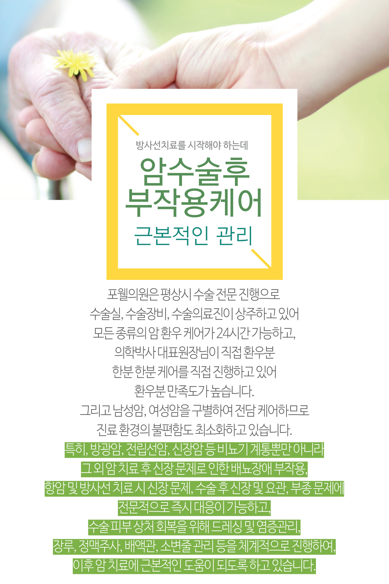 이를 제대로 관리하기 위해서는 암요양병원의 전문적인 케어가 필수적입니다.