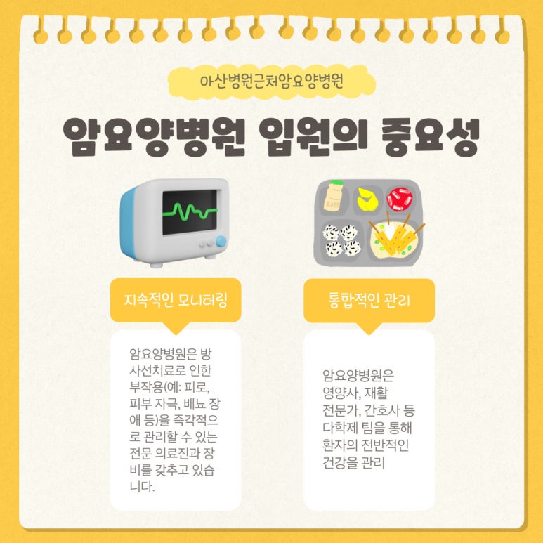 방사선치료의 성공과 환자의 전반적인 웰빙을 위해 암요양병원 입원은 매우 권장되는 선택입니다.